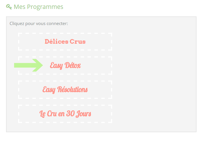 Choisissez Easy Détox parmi les accès liés à votre compte, comme sur l’image à droite.