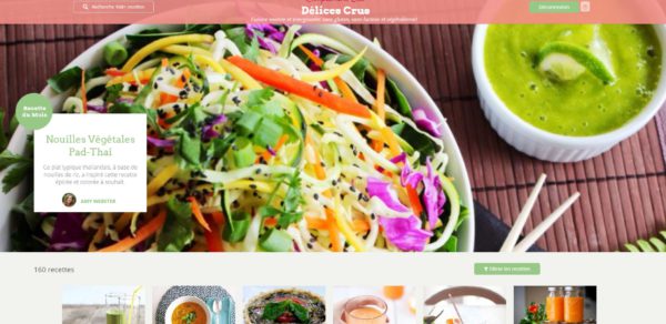 Ci-dessus, une image du site Délices Crus. Bien que la photo de la recette du mois change tous les mois, la présentation du site demeurera essentiellement la même.