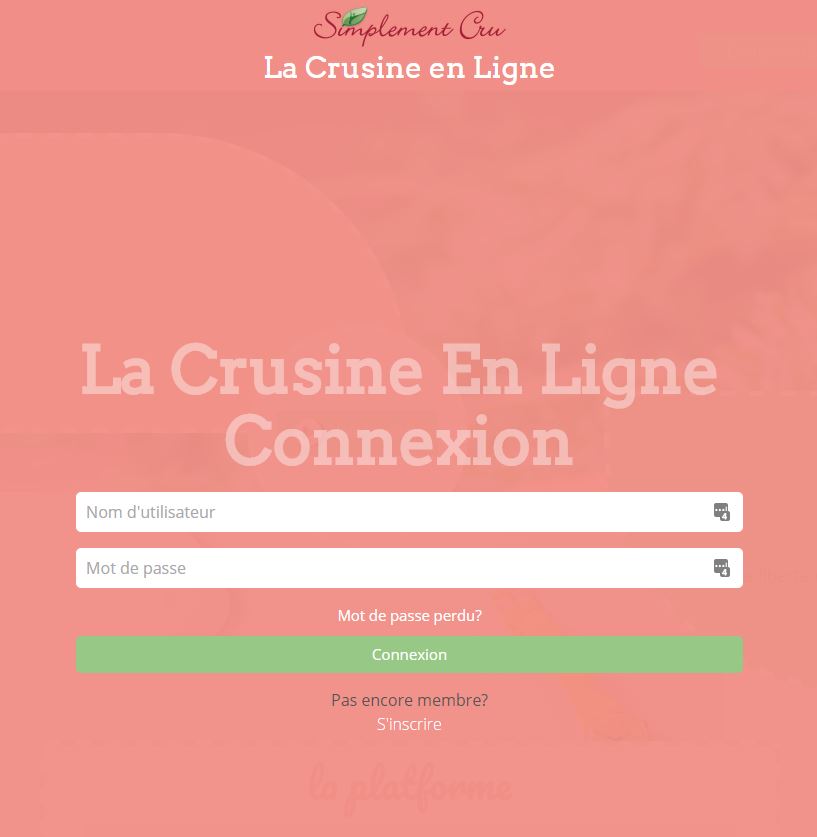 Pour vous connecter à votre compte il suffit de vous rendre sur cette page. Cliquez sur le bouton vert Connexion/S’inscrire en haut à droite puis, dans la fenêtre qui s’ouvre, entrez vos accès d’utilisateur Simplement Cru (voir image) et cliquez ensuite sur Connexion.