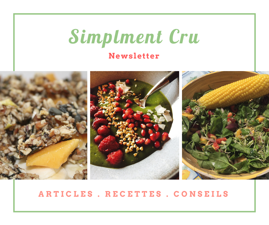 Je suis ravie de vous annoncer enfin les dates des cours de cuisine Simplement Cru qui seront proposés cet automne. Je suis désolée d’avoir mis tant de temps à fixer ces dates, car j’ai reçu de nombreuses demandes durant l’été, y compris des inscriptions en avance! Le résultat est qu’il y aura deux cours Niveau 1 en français, ainsi que deux cours Niveau 1 en anglais, qui auront lieu d’ici à Noël. Je vous annonce également une nouveauté, mon premier cours Simplement Cru Niveau 2, qui sera donné pour la première fois en français. Ce cours couvre tout ce qui est vert. Pour plus d’information, consultez cette page, les détails de ce cours suivront.